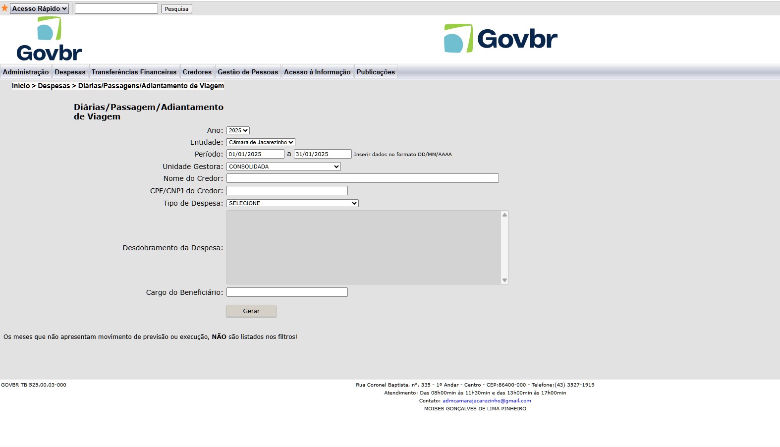 Portal da transparência da Câmara Municipal